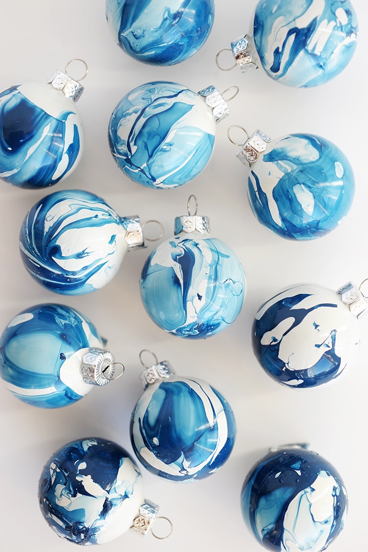 How to make DIY Indigo Marbled Ornaments: